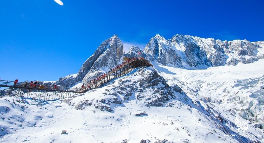 Núi Tuyết Ngọc Long - 'Thụy Sĩ Á Đông' cùng chăm sóc quanh năm, khám phá vẻ đẹp hùng vĩ và lưu giữ khoảnh khắc đáng nhớ. Đoàn đi leo lên cao hơn độ cao 4600m và chụp ảnh lưu niệm. (bao gồm các thiết bị lớn, không bao gồm xe điện)