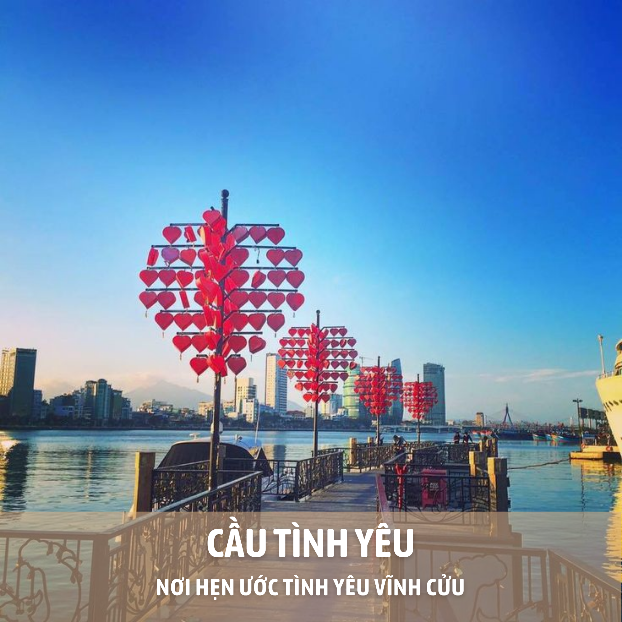 - Lựa chọn 1 (Tự túc ăn trưa) Tự do để khám phá TP. Đà Nẵng. Quý khách có thể ra sông Hàn ngắm cầu Rồng - một trong những con rồng thép lớn nhất thế giới, cầu Trần Thị Lý - với kiến trúc tựa con thuyền căng buồm vươn ra biển lớn, tượng Cá chép hóa rồng - một biểu tượng mang đậm tính nghệ thuật và tín ngưỡng dân gian, cầu Tình Yêu - cây cầu trái tim với những ổ khóa dễ thương trên thành cầu rất thú vị và lãng mạn. Hoặc đến chợ Hàn (hoặc chợ Cồn), mua sắm đặc sản địa phương. Quý khách tự túc ăn trưa, trải nghiệm phong vị ẩm thực độc đáo của Đà Nẵng.