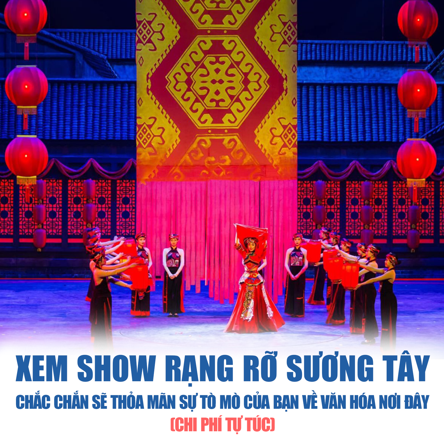 Sau khi ăn tối, Quý khách có thể xem show biểu diễn nổi tiếng THIÊN CỔ TÌNH hoặc CỬU CA SƠN QUỶ Giá 380RMB/khách (Chi Phí Tự Túc)..