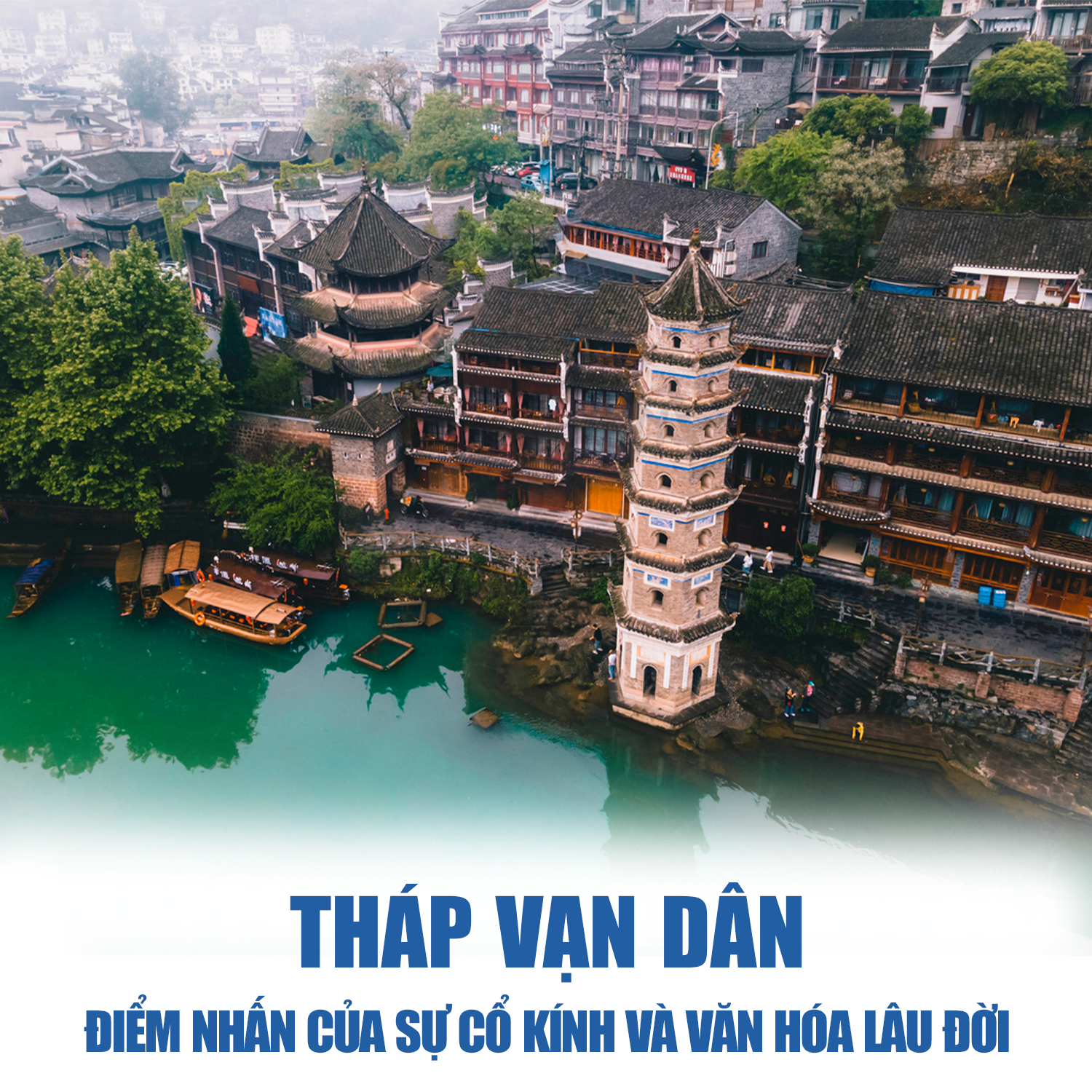 - Tháp Vạn Dân - nằm ở phía hạ lưu sông Đà Giang – Phượng Hoàng Cổ Trấn, được xây dựng vào năm 1988 theo đề xuất của họa sĩ Hoàng Vĩnh Ngọc từ bộ quỹ cộng đồng, trên nền một ngôi miếu cổ và lò đốt giấy thời Gia Khánh . Tháp cao gần 23 m, gồm 7 tầng với mái cong mang nét kiến trúc truyền thống Trung Hoa, hướng ra cầu Hồng Kiều, cầu Gió và Vạn Thọ Cung, tạo thành điểm ngắm cảnh trên cao bao quát trọn vẹn cổ trấn về đêm.