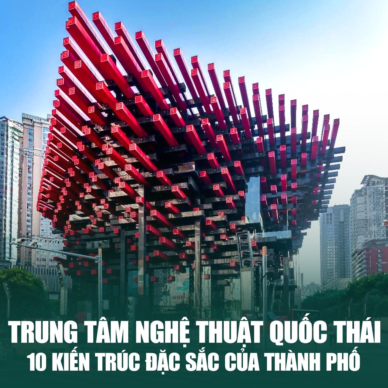 • Trung tâm Nghệ thuật Quốc Thái Trùng Khánh (tham quan bên ngoài): nằm tại trung tâm sầm uất của Trùng Khánh, tòa nhà hiện lên nổi bật với kiểu dáng như “núi rực lửa” – kết cấu lồng ghép các dầm đỏ-đen theo kỹ thuật “đề cấu” truyền thống Trung Hoa .